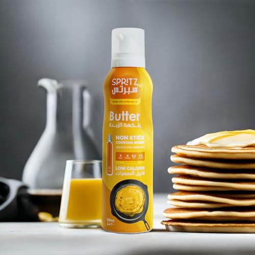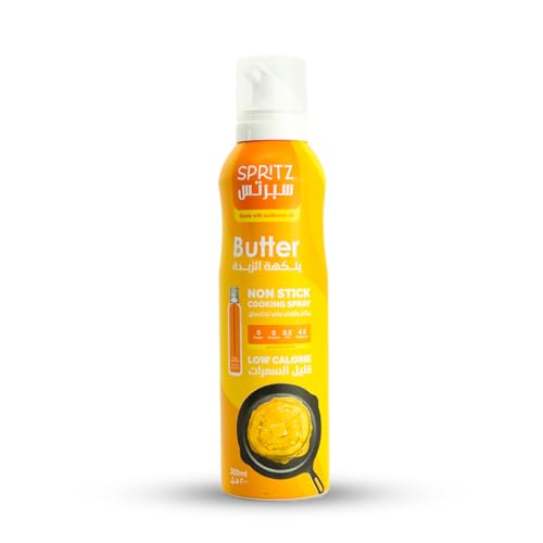 - Spritz Butter non stick cooking spray Product Features: Low-calorie. Low-fat intake. Pure sunflower oil. Easy to use. Free of chemicals/ additives No propellants Perfect for air fryer, stove, microwave, and oven.