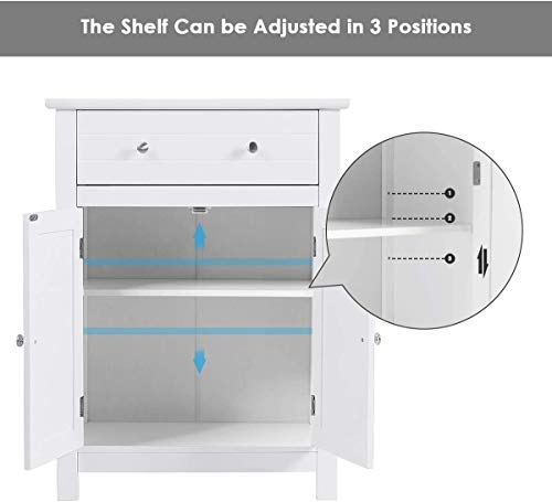 - Large Storage Space: Comes with a large drawer and a cabinet, our bathroom cabinet provide a large space for storing your stuff. And the adjustable shelf can meet your variable storage needs.