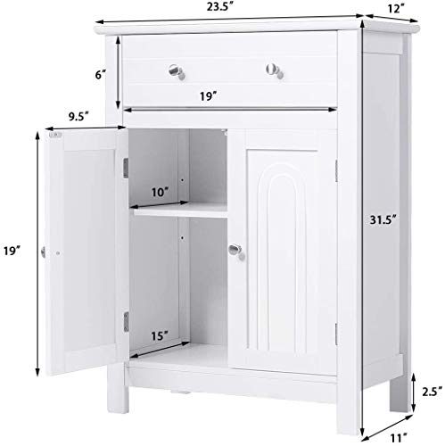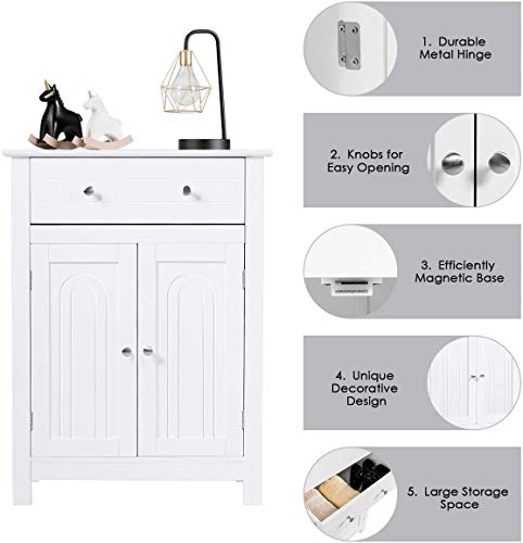 - Elegant Appearance: Comes with smooth surface and unique design, our bathroom cabinet is suitable for matching any decoration style in your home. The cabinet has a stylish groove design on drawers and doors for a touch of fashion.