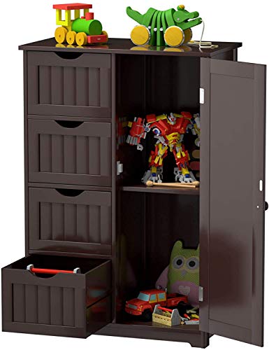 SPSUPE - Floor, Freestanding Entryway 4 Drawer and 1 Cupboard, Ideal for Home Office Kitchen Living Room Bathroom Wooden Storage Cabinet, Brown