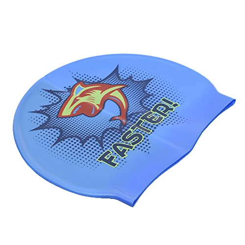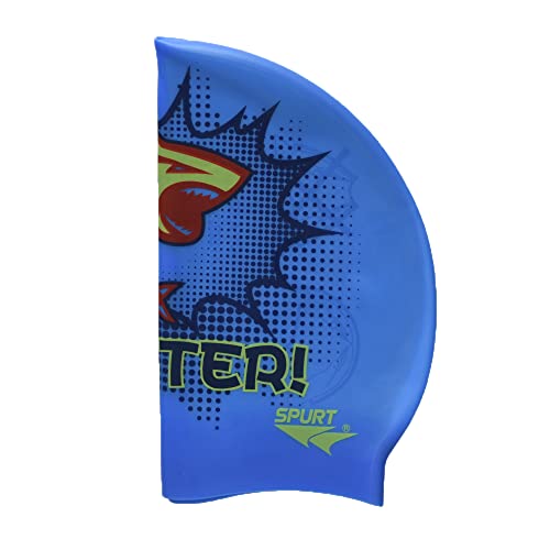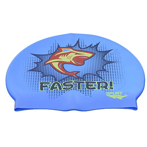 - SPURT Shark-Printed Silicone Swimming Cap in Bag For Adults Blue