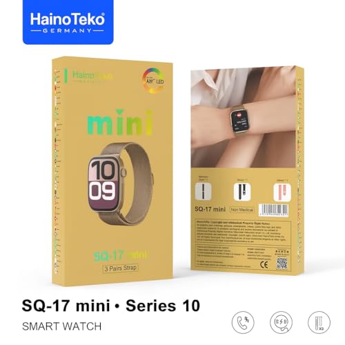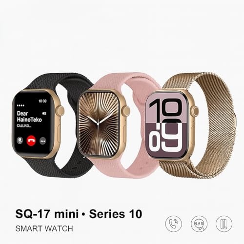 ساعة ذكية بشاشة اموليد مع 3 أحزمة قابلة للتغيير وشاحن لاسلكي مصممة للنساء، لون ذهبي، SQ17
