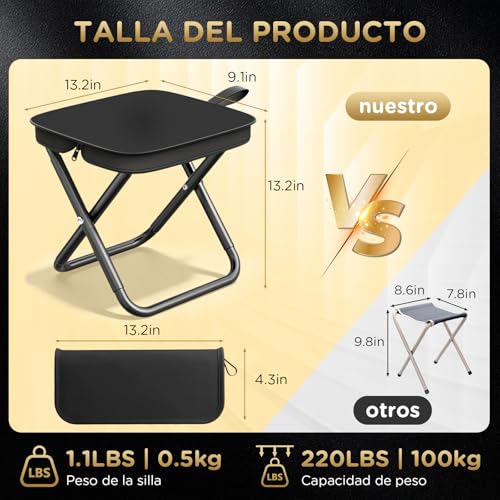 SQEEQE - Portable Folding Chair, Beach Folding Camping Chairs, Camping Stool with Zipper, Lightweight Stool, Fishing Camping Chair for Hiking, Picnic, Beach