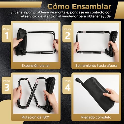 - 【Easy to Install】This folding camping chair is very easy to install. Just open the zipper and it will unfold directly without hassle. To fold, simply spread out, gently push it and rotate it 180 degrees to fold it gently. Note: Make sure the interface is inserted correctly to avoid personal injury caused by improper assembly.