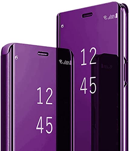 sqgylgl - جراب حماية قابل للطي لموبايل سامسونج A24 بمرأة رؤية واضحة جالاكسي A24 شبكة الجيل الرابع 4G مع مرأة مغناطيسية ذكية غطاء قلاب A24 من اس كيو جي واي ال أرجواني مادة صناعية
