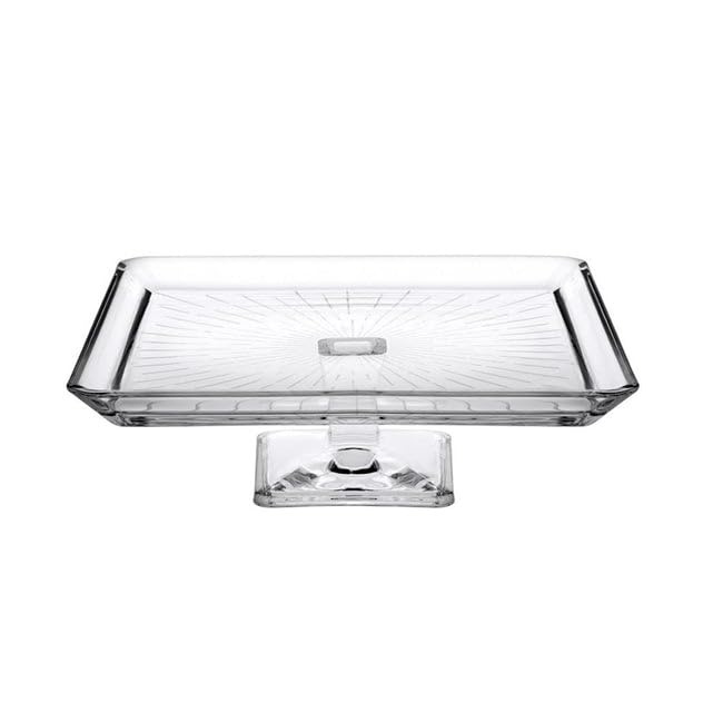 - ELEGANT DESIGN: Square crystal clear glass cake stand with a classic footed pedestal base, adding a sophisticated touch to any table setting.