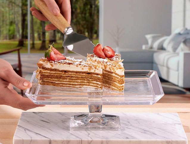 - STURDY PEDESTAL BASE: The square footed base ensures stability and elevates your desserts for an impressive and eye-catching display.