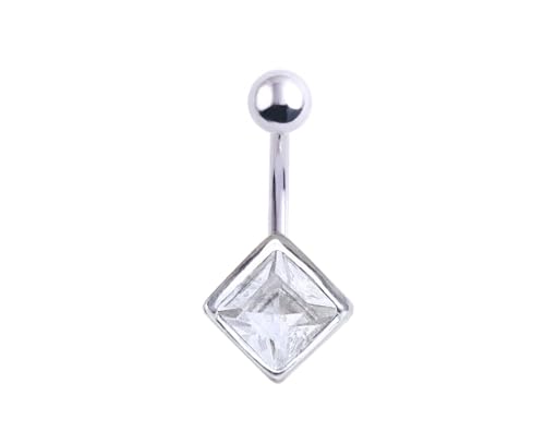 BIJOUX BEAUTIQUE - Square Diamond Navel Belly Gem Barbell Piercing Jewelry - White