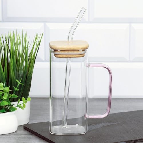 Generic - أكواب شرب مربعة الشكل مع غطاء ومقبض محمول، مثالية لمشروبات الماء والعصير والقهوة والحليب، للاستخدام في المنزل أو المكتب أو أثناء السفر، مصنوعة من زجاج حراري، متعدد