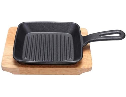 Generic - حلة طهي وشواء تبنياكي بشكل مربع من الحديد المصبوب مع مقبضين وصينية تقديم خشب