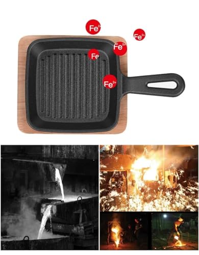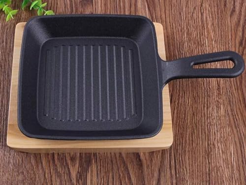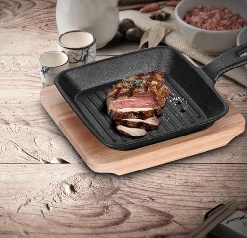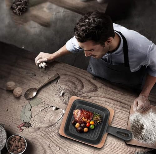 - طاسة القلي بشكل مربع من الحديد الصلب مناسبة لجميع أنواع المواقد بما في ذلك الحث الحراري، وهي مثالية لشوي شرائح اللحم أو الخضروات وغيرها من الأطعمة اللذيذة، ومزودة بصينية تقديم خشب.