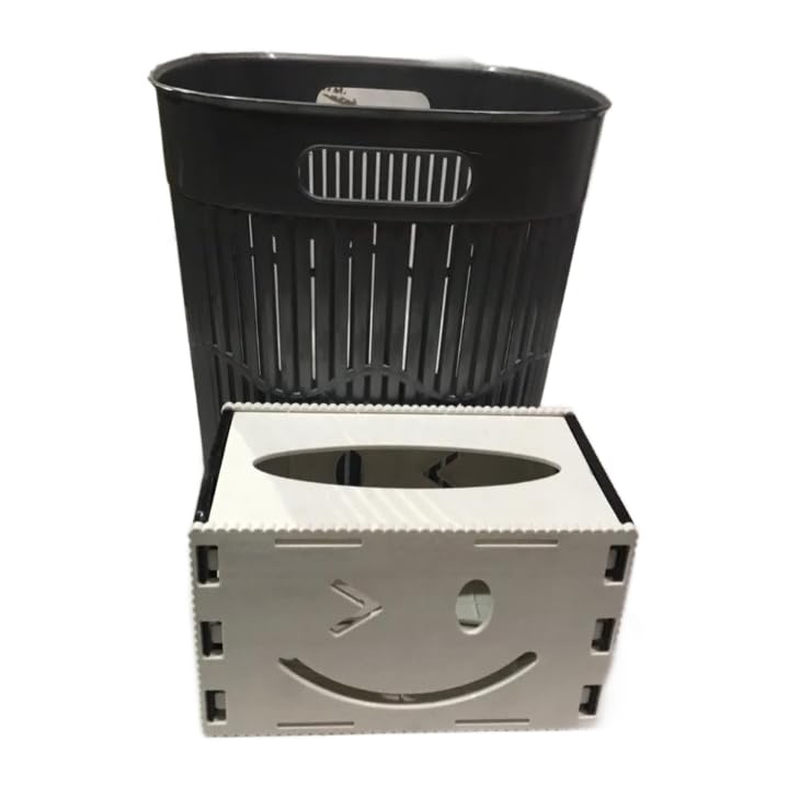 Generic - Square Trash Bin with Plastic Tissue Box (Black)
