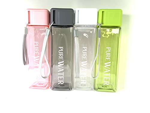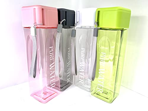 Generic - Square Water Bottle 16oz (4 Pack) Pink/Gray/Clear/Green