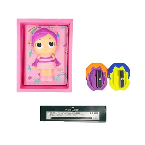 Generic - دفتر تخطيط إسفنجي بتصميم بنت ولون فوشيا + 12 قلم رصاص نوريكا من ستيدلر + 5 برايات على شكل دلو