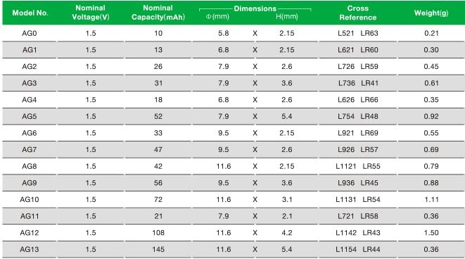 - بطارية ساعة LR721، AG11، SR720، SR58، 362، 532، RW310