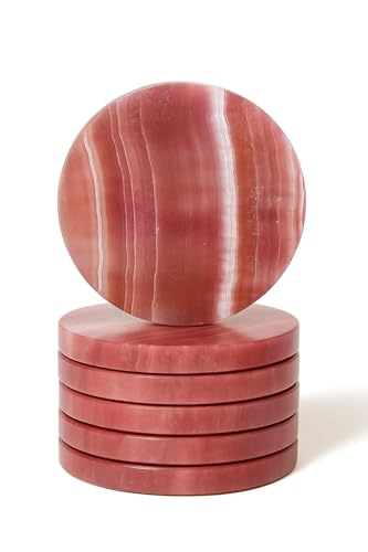 Generic - SS Antiquity & Marble Set of 6-3.5 Inch Marble Coasters for Drinks - Handmade Abaster Marble Stone - Coasters for Coffee Table - Modern Design for Office Decor(RED SADA)