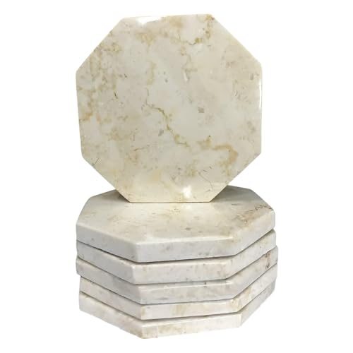 Generic - SS Antiquity & Marble Set of 6 Octagon Polished Natural Marble Stone Coasters 9cm Diameter - Drink Ring Protection (Beige)