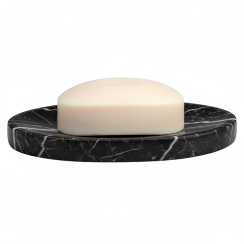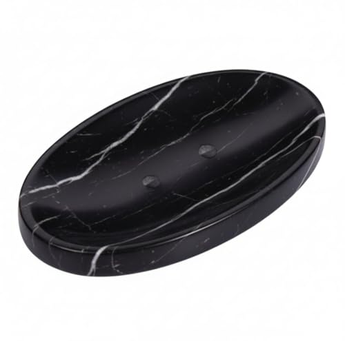 Generic - SS Marble Soap Holder - Polished & Shiny Oval Marble Soap Holder - Sponge Holder for Face, Bathroom Makeup Tray with Drain Hole Well-Made Bathroom Accessory (BLACK)