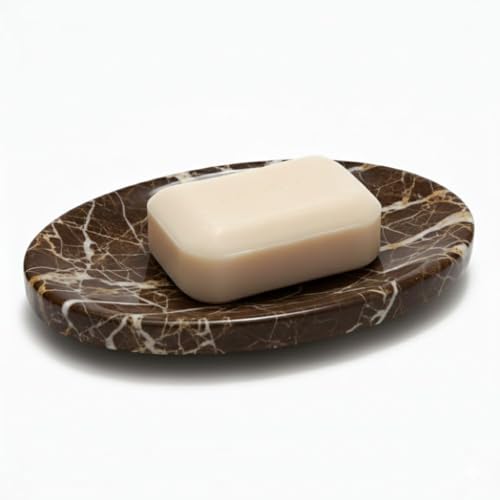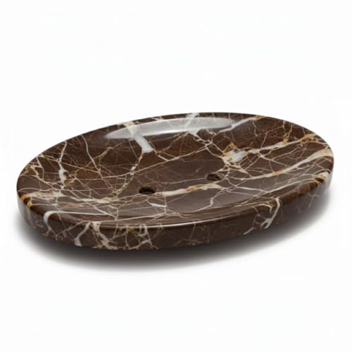 Generic - SS Marble Soap Holder - Polished & Shiny Oval Marble Soap Holder - Sponge Holder for Face, Bathroom Makeup Tray with Drain Hole Well-Made Bathroom Accessory (BROWN)