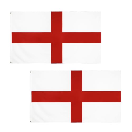 Hovika - St Georges Flag 5ft x 3ft, Large St. George's Cross Flag England Flags - Double Sided with Brass Eyelets, for Indoor Outdoor Decorations (2PCS)