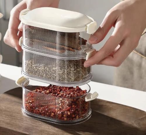 Generic - حاويات تخزين طعام شفافة قابلة للتكديس، 3 طبقات، بأغطية بيضاء، للتوابل والفواكه والمكسرات، منظم مطبخ