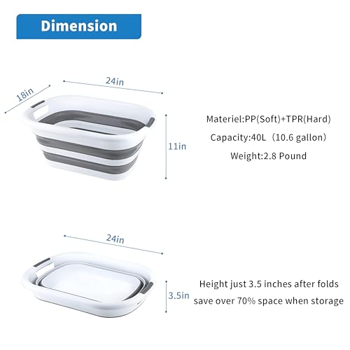 - When fully expanded, the basket measures 60 x 45 x 27 cm and holds up to 40 liters, offering ample capacity for large loads of laundry, pet bathing, or storing toys and clothing.