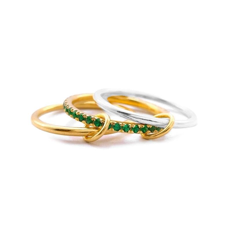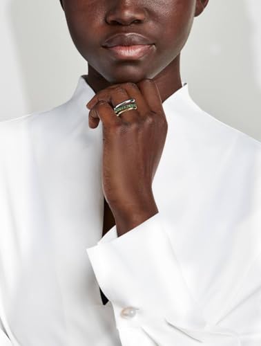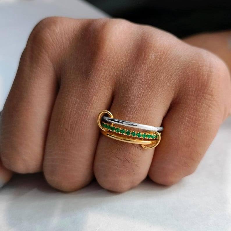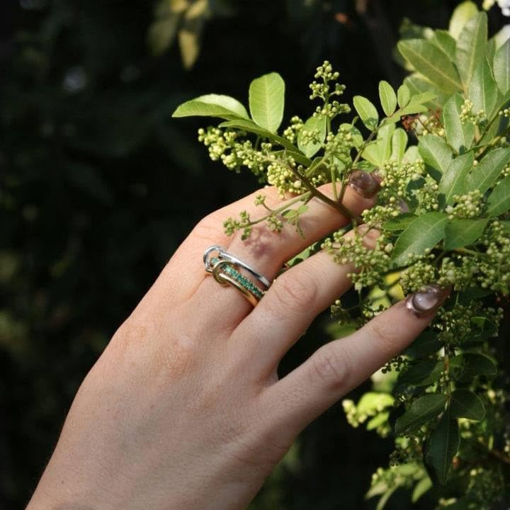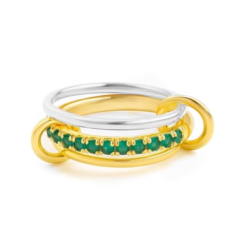 عام - Stackable Ring Set for Women, Gold and Silver Tone Rings with Green Stone Detail, Modern Minimal Fashion Ring for Everyday Wear