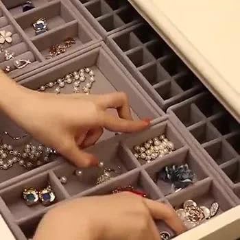 - سعة تخزينية متعددة الاستخدامات: مساحات تخزين متعددة تستوعب أنواعًا مختلفة من المجوهرات - الخواتم والحلقان والسلاسل والأساور.