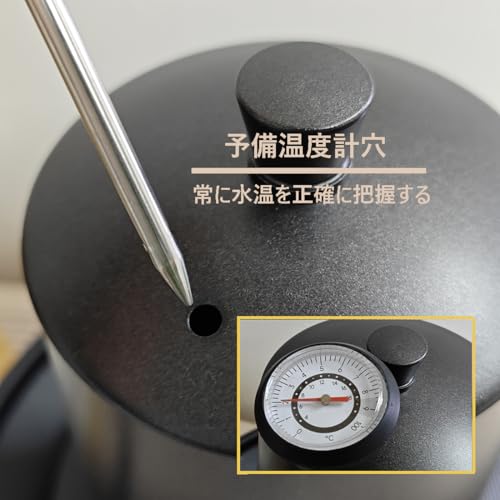 - SAFE Drip Kettle:Coffee drip pot lid with thermometer vent for insertion in thermometer, not only exhaust heat to prevent burns, but also allows you to insert the thermometer to check your hot water temperature at any time (thermometer not included)