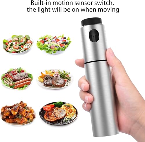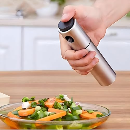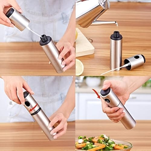 - The elegant stainless steel finish of this oil spray adds a touch of sophistication to your kitchen or dining tabletop. Its compact design allows for easy storage or portability, making it the perfect companion for outdoor grilling or picnics. With its stylish appearance, it's not just practical but also enhances your cooking experience.