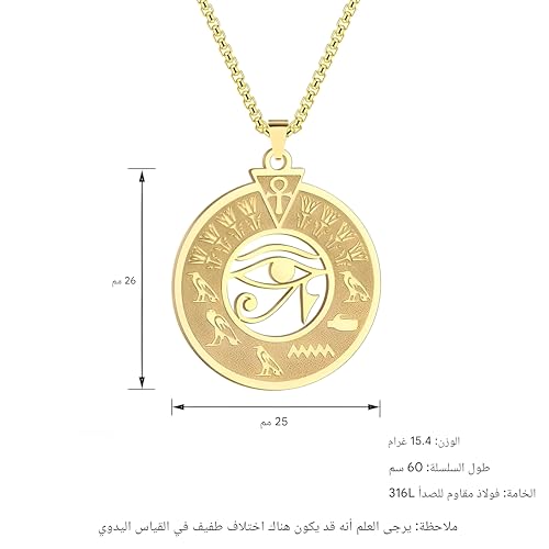 Generic - Stainless Pendant - Egyptian Horus Eye Necklace for Men with Hieroglyphic and Engraved Design, Adds a Distinct Ancient Cultural Touch to Any Jewelry Collection While Expressing Timeless Charm