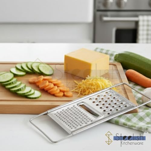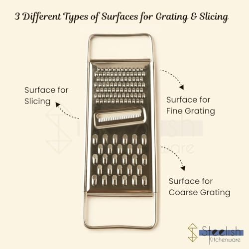 - 🔪 ✔ Premium Grater Stainless Steel Build Made with rust-resistant stainless steel, this grater for kitchen ensures sharpness, durability, and long-lasting performance even with daily use.