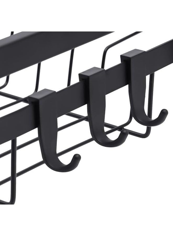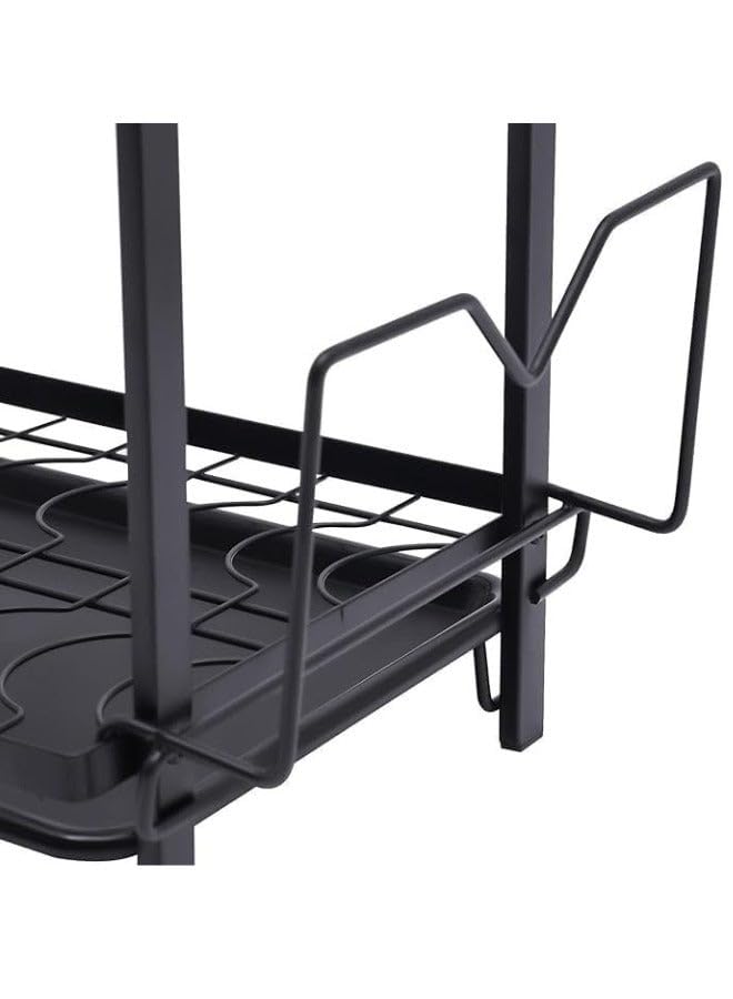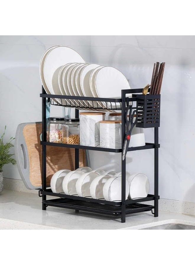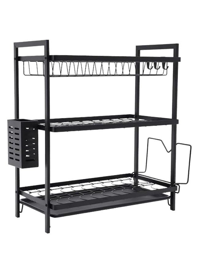 generic - رف تجفيف اطباق من 3 طبقات من الستانلس ستيل مع حوامل جانبية وخطافات للشوك والسكاكين وألواح التقطيع، مقاس 50 × 8 × 25 سم - اسود