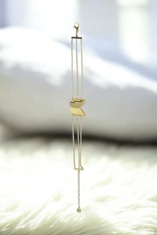Generic - سوار قابل للتعديل من الستانلس ستيل بتصميم فراشة للبنات - ذهبي