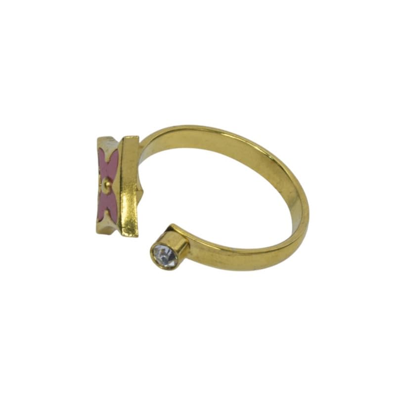 Generic - Stainless Steel Adjustable Open Ring with Red Flower and Clear Stone for Women - Gold