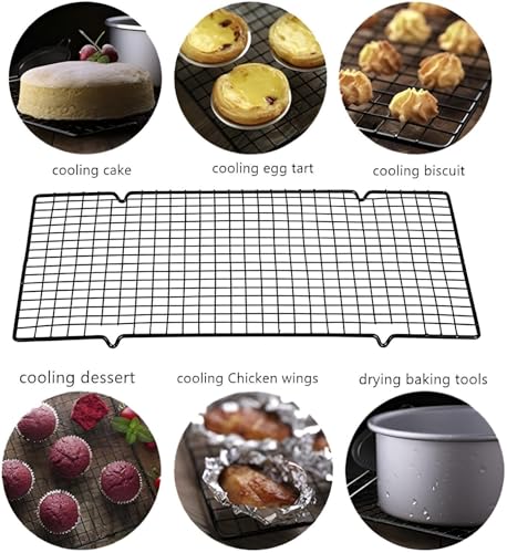- The rectangular cake cooling rack is designed from high-quality carbon steel, featuring a non-stick coating that makes it both durable and heat-resistant, ensuring it can withstand regular use while maintaining its integrity and performance.