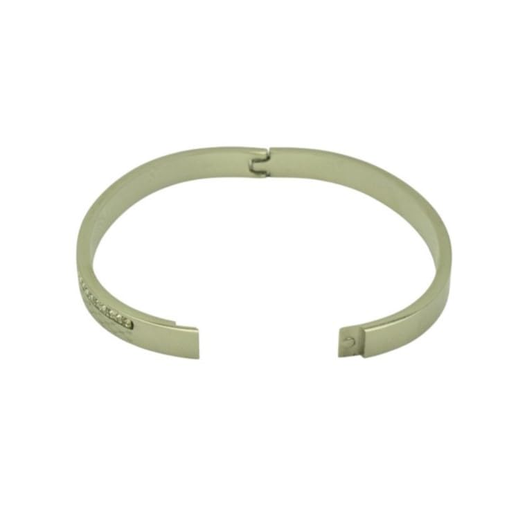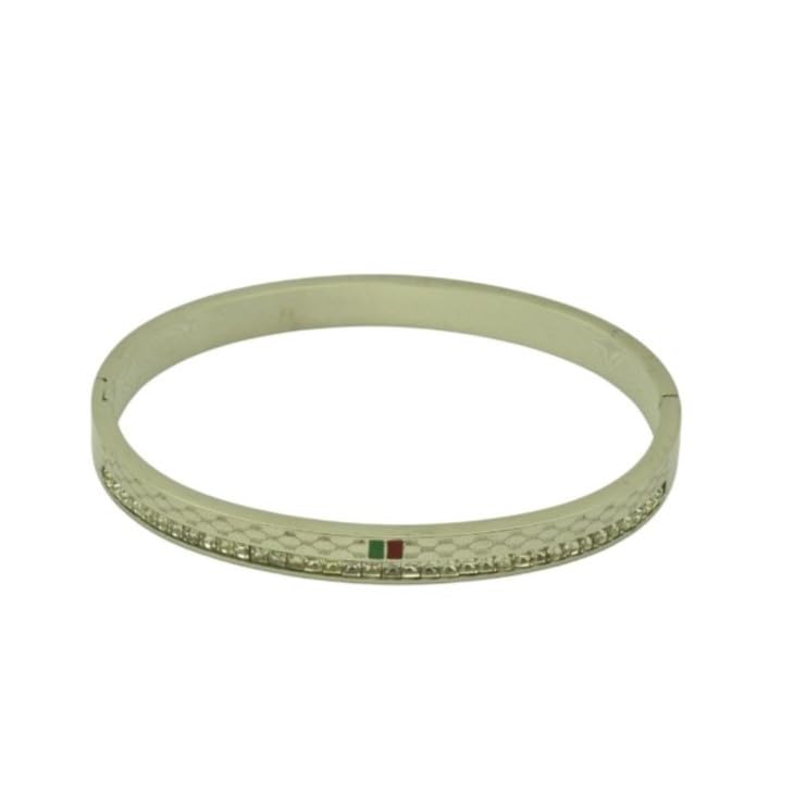 Generic - سوار ستانلس ستيل مخطط مرصع باحجار شفافة للنساء، مقاس 18
