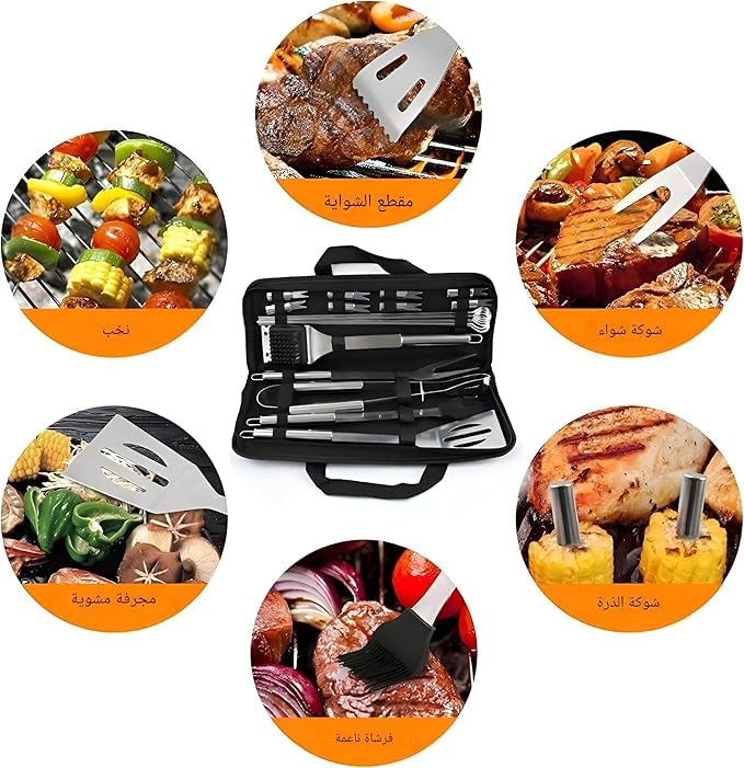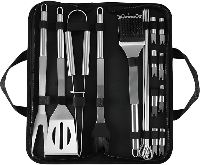 Generic - مجموعة أدوات الشواء من الفولاذ مقاوم للصدأ مع اكسسوارات شواء - شنط تخزين عملية، مثالية لتجمعات العائلة والأصدقاء في الهواء الطلق - مجموعة من 24 قطعة