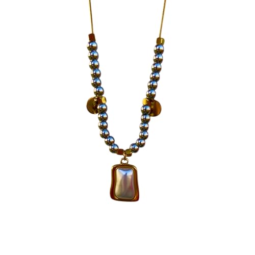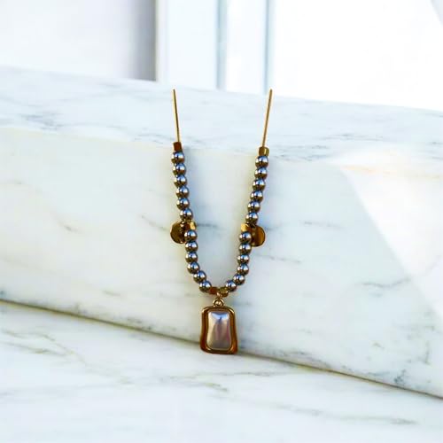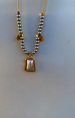 cherry accessories - سلسلة من الخرز من الستانلس ستيل مع قلادة من عرق اللؤلؤ/اللؤلؤ الصناعي - بطول 55-60 سم، مجوهرات مطلية بالذهب للنساء