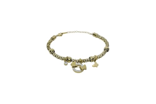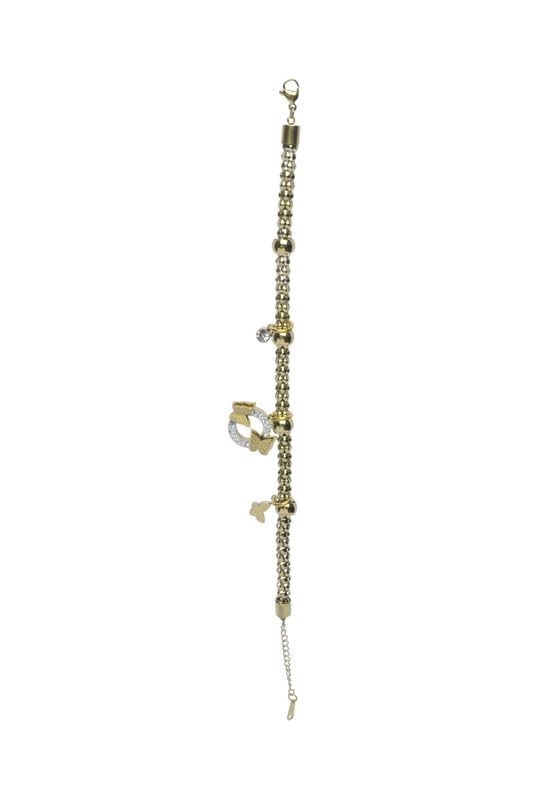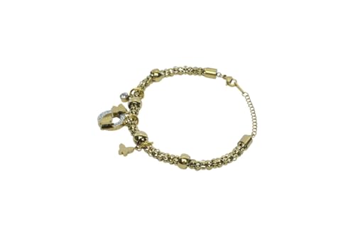 Generic - Stainless Steel Beaded Mesh Charm Bracelet For Women - Gold