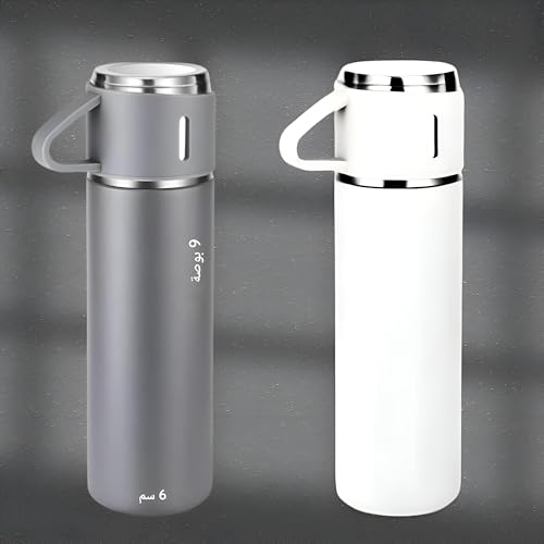 Generic - Stainless Steel Bottle - Reusable Insulated Vacuum Flask Set with 3 Cups, Perfect for Enjoying Hot or Cold Beverages on the Go 500ml (White)