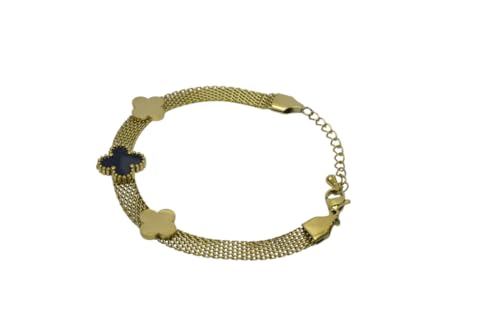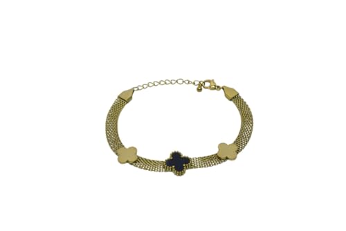 Generic - Stainless Steel Bracelet With Clover Design For Girl - Gold Black - 765