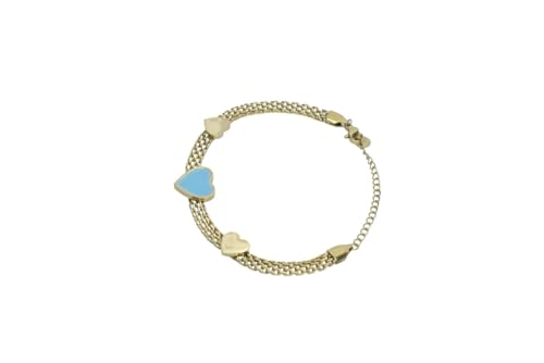 Generic - Stainless Steel Bracelet With Heart Desing For Girl - Gold Blue