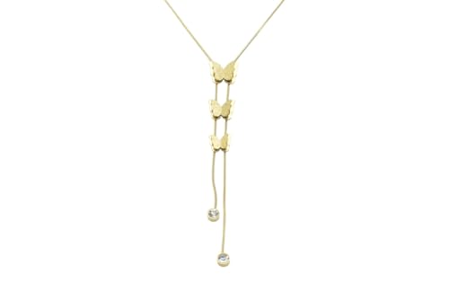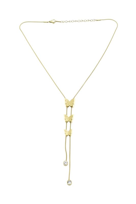Generic - Stainless Steel Butterfly Tassel Lariat Necklace for Women - Gold
