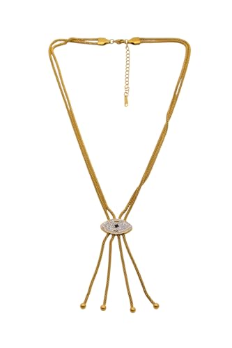 Generic - Stainless Steel Central Pave Evil Eye Charm Necklace For Women - Gold