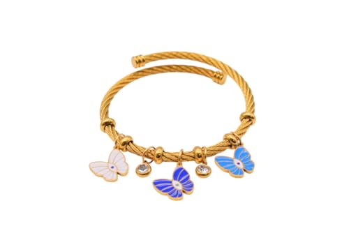 Generic - Stainless Steel Charms Bracelet With Butterfly Designs For Girls - Multicolor