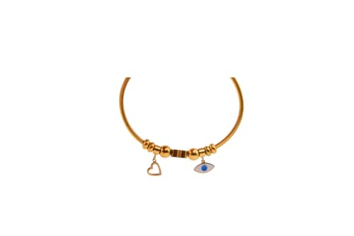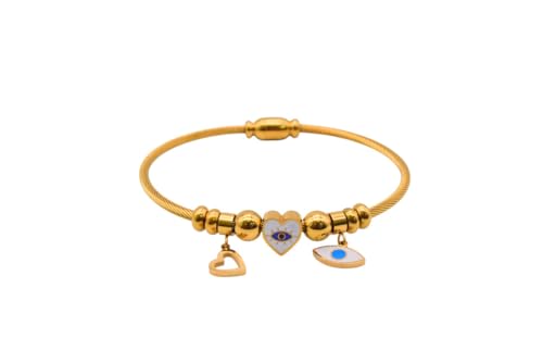 Generic - Stainless Steel Charms Bracelet With Eye & Heart Designn For Girls - Gold