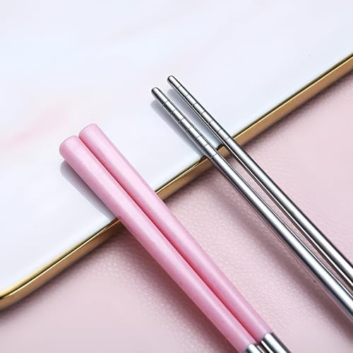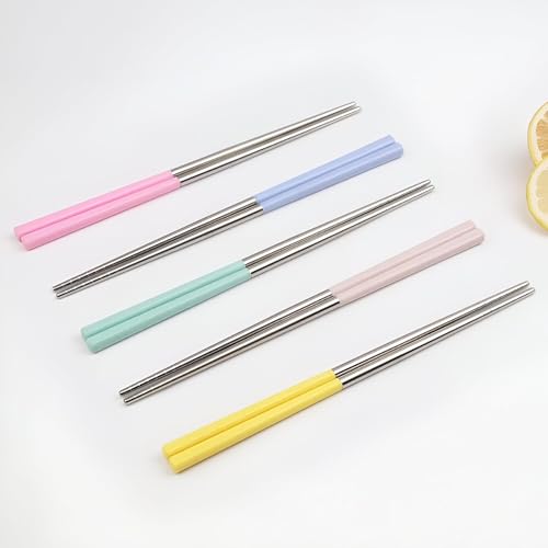 - These reusable chopsticks are crafted from premium 304 stainless steel with a polished finish that resists rust and heat, ensuring long-lasting durability and a sleek appearance, while the handles combine wheat straw and food-safe plastic for a lightweight, non-slip grip that enhances control during meals.