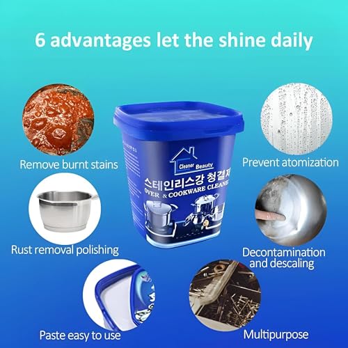 Generic - منظف ستانلس ستيل - تركيبة معجون قوية تزيل بقع الفرن العنيدة والصدأ والشحوم من أواني الطبخ في دقائق، امن على جميع الاسطح، 465 غرام.
