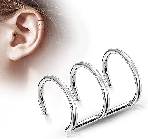 Generic - Stainless Steel Clip On Triple Closure Ring Non-Piercing Fake Cartilage Helix Ear Cuff by Too Stylish